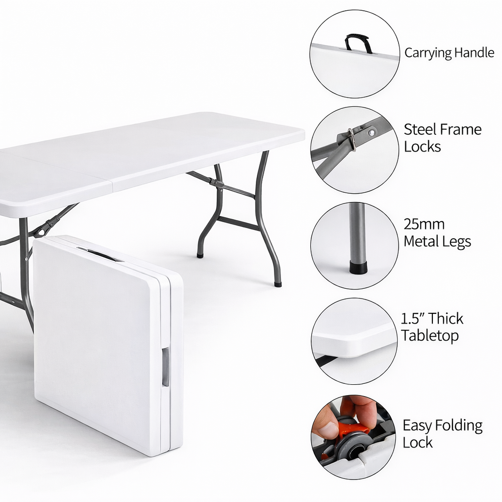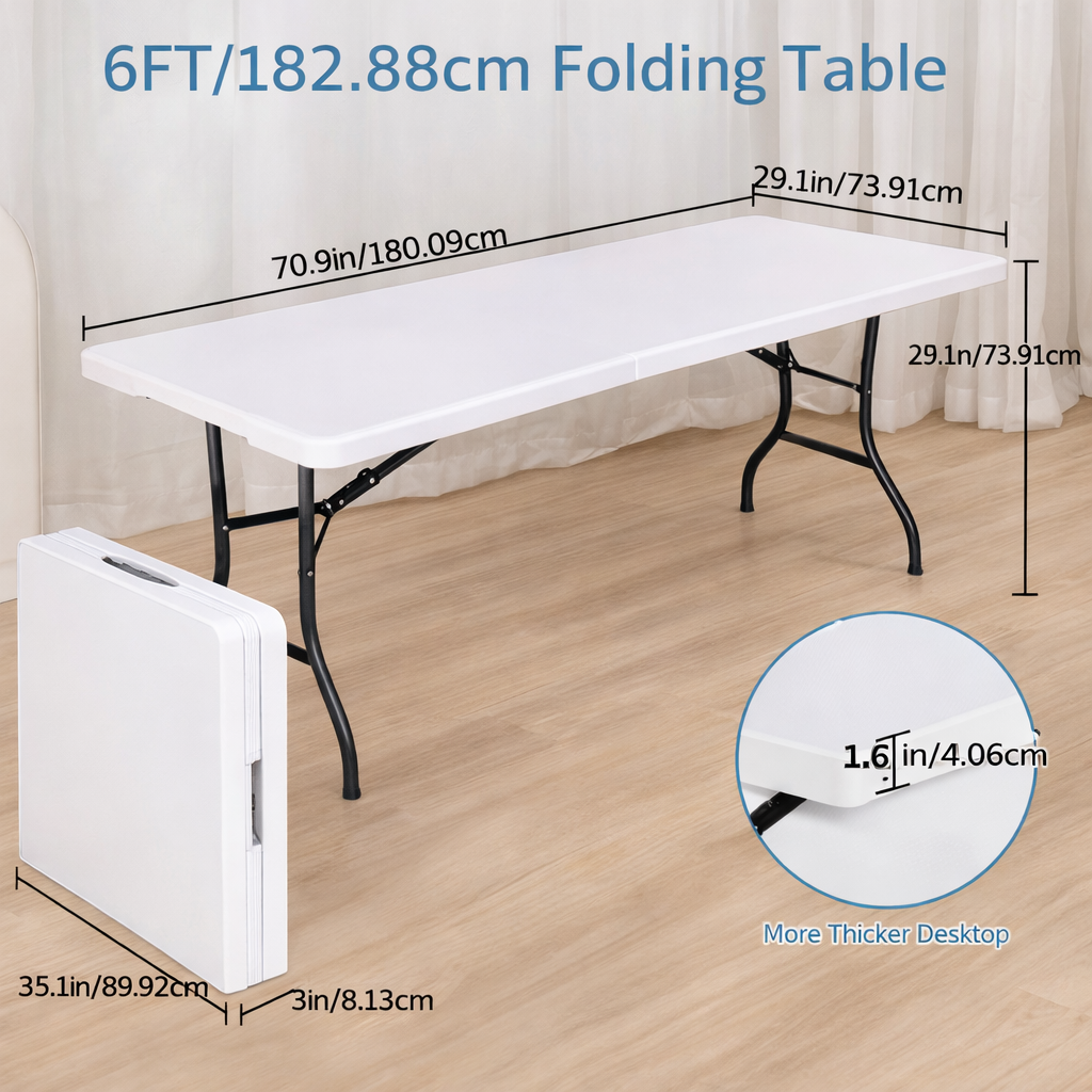- Folding Table 6 Foot Rectangle Fold-in-Half Table, Indoor